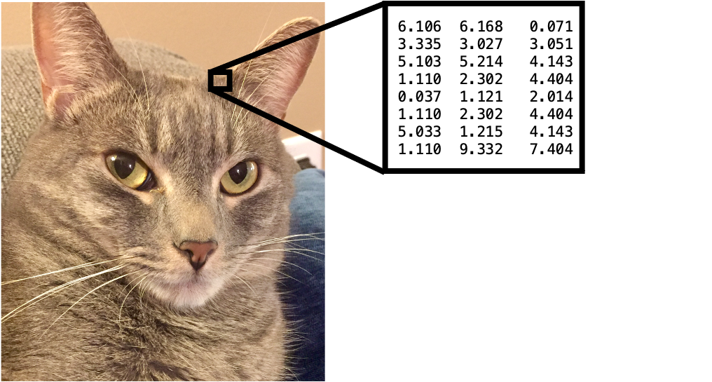 图像的像素可以表示为一个矩阵。假设我们有一个 \(m \times n\) 像素的图像。我们可以让 \(\boldsymbol{X}\) 是一个表示该图像的矩阵,其中 \(x_{i,j}\) 表示第 \(i\) 行和第 \(j\) 列像素的强度。